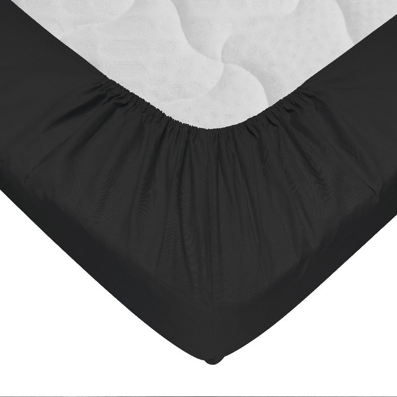 Drap-housse 140x190 cm Noir - 100% coton 57 Fils - Bonnet 30 cm