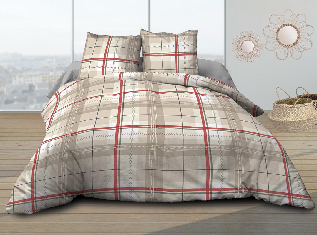 Housse de couette Coton 57 Fils - Bristol Rouge - 220x240 cm + 2 taies assorties