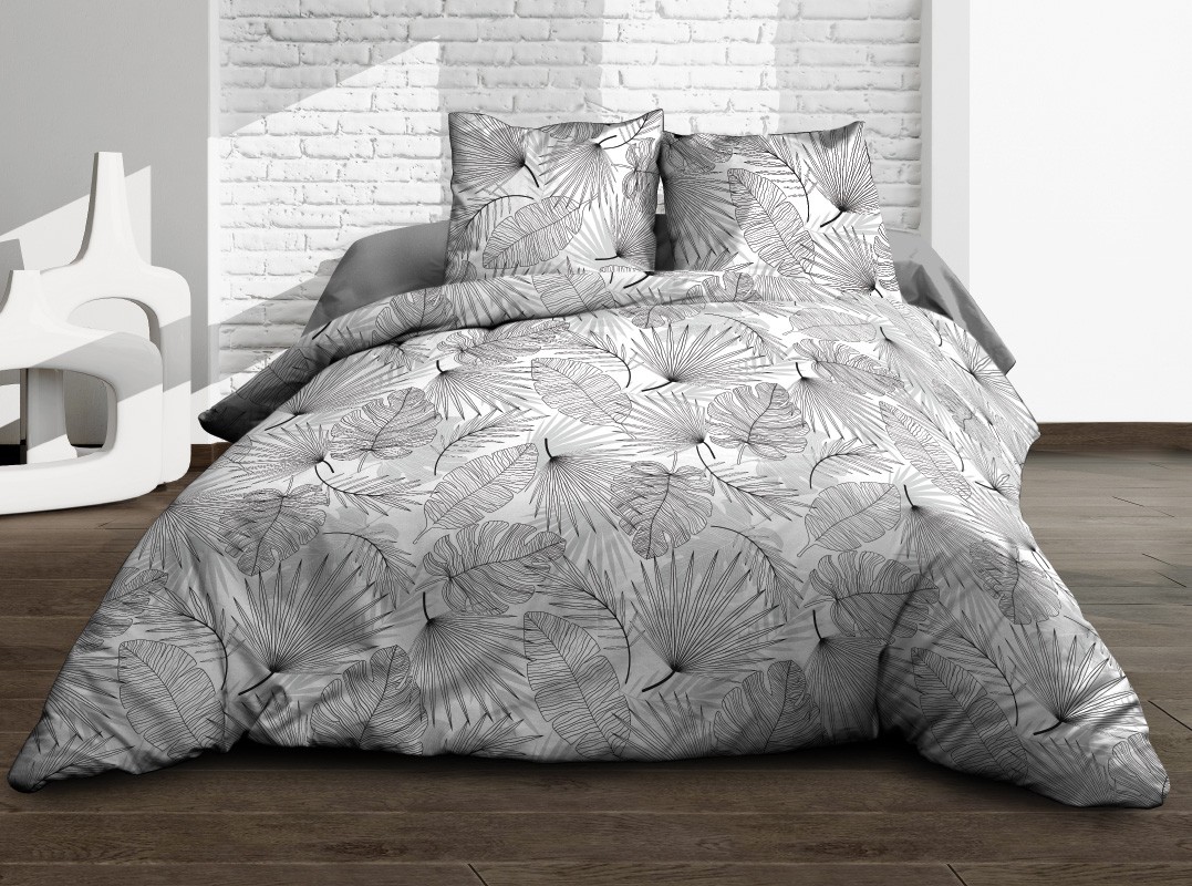 Maxi Housse de couette Coton 57 Fils - Olinda gris - 240x260 cm + 2 taies assorties