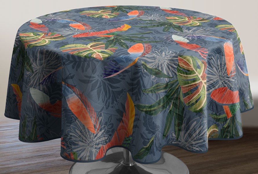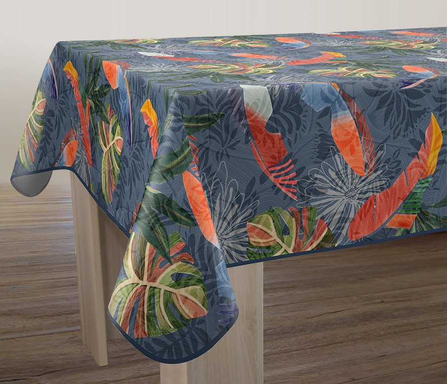 Nappe imprimée anti-taches, qualité lourde et traitée déperlant. Garantie grand teint, facile d'entretien : lavage en machine à 40° Repassage superflu et séchage ultra rapide. Composition 100% Polyester