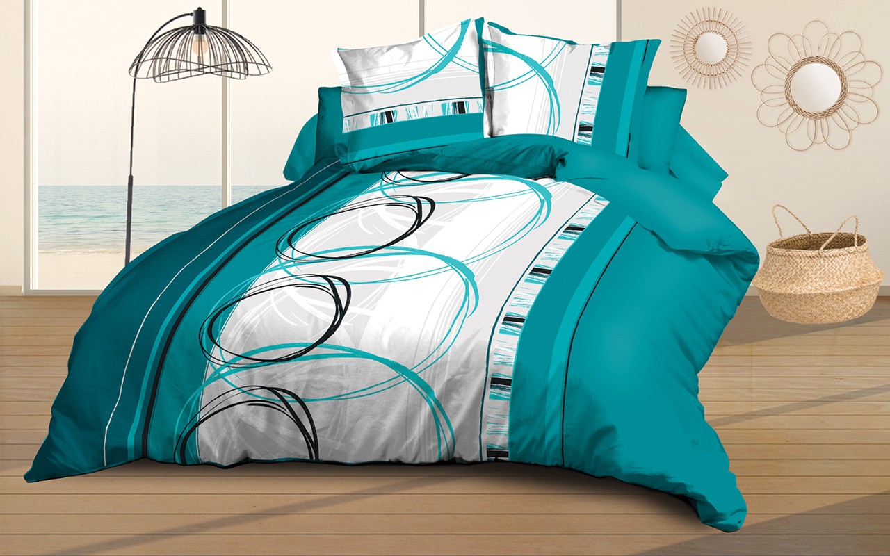 Parure de draps Microfibre - Roue-libre turquoise - Drap plat + drap-housse 140 + 2 taies